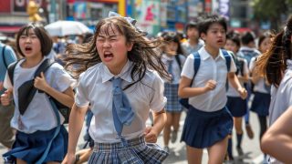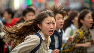 福岡県 久留米市で、集団パニックに陥った女性たち ストリートスナップ